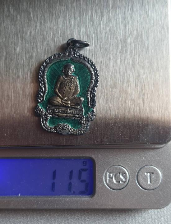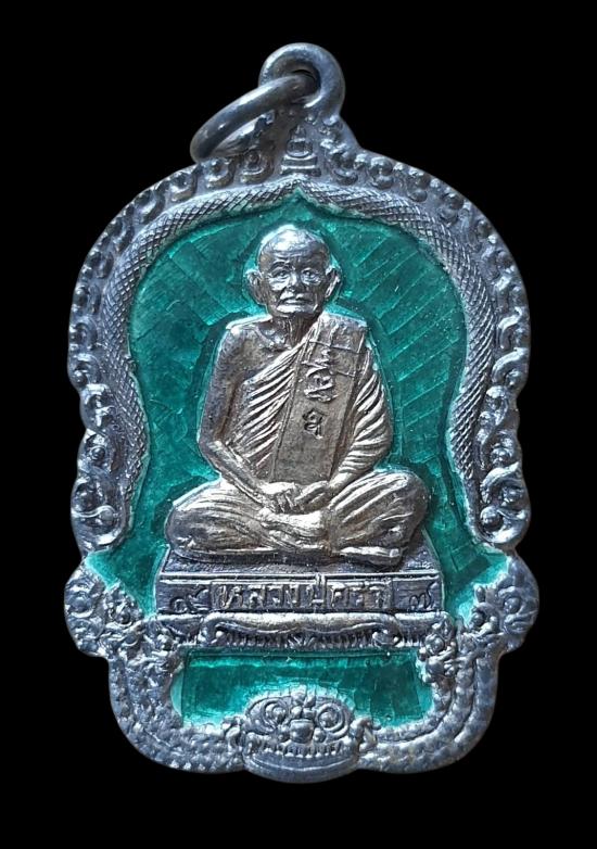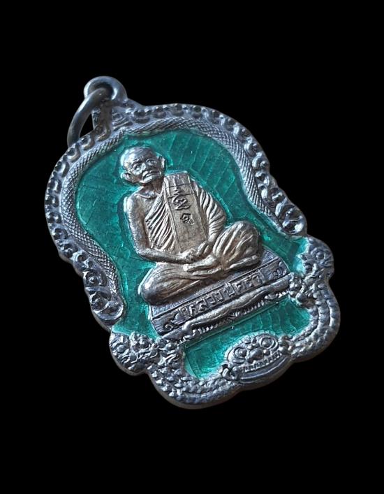 เหรียญหลวงปู่คร่ำ เนื้อเงินลงยาสีเขียว กล่องเดิม ปี2537(น้ำหนักเหรียญ 11.5กรัม)...