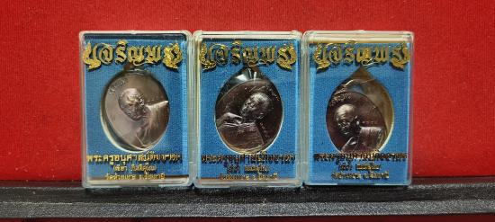 แบ่งปัน เหรียญเจริญพรบนหันข้าง หลวงพ่อเขียว กิตติคุโณ วัดห้วยเงาะ จ.ปัตตานี ปี58 เนื้อทองแดงผิวรุ้ง รายการสมนาคุณผู้จองรายการเนื้อเงินหน้ากากทองคำ ไม่มีในรายการจอง ชุด 3 องค์ กล่องเดิมๆ แท้ทันประกันให้