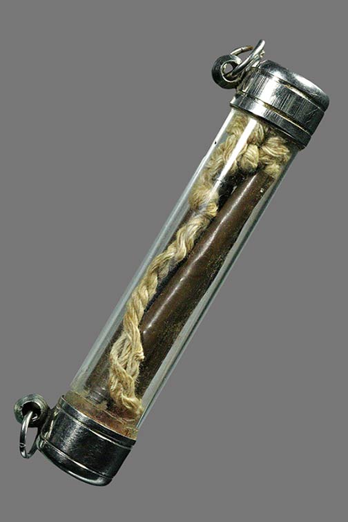 ตะกรุดทองแดง 3 ดอก หลวงพ่อจง วัดหน้าต่างนอก จ.อยุธยา ขนาด 5 ซม. พร้อมเชือกเก่า |