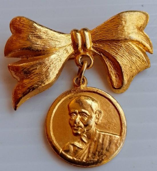 เหรียญกลมพิมพ์เล็ก สมเด็จพระพุฒาจารย์ โต วัดระฆัง รุ่น100ปี พ.ศ.2515 เนื้อทองแดง กะไหล่ทองพร้อมโบว์ แจกกรรมการ |