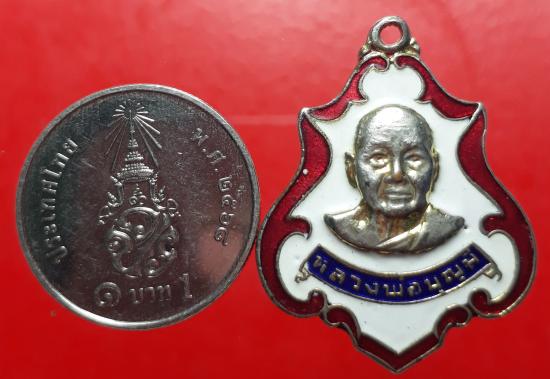 เหรียญหลวงพ่อบุญมี วัดบึงกระจับ กะไหล่ทองลงยา เคาะเดียวแดง |