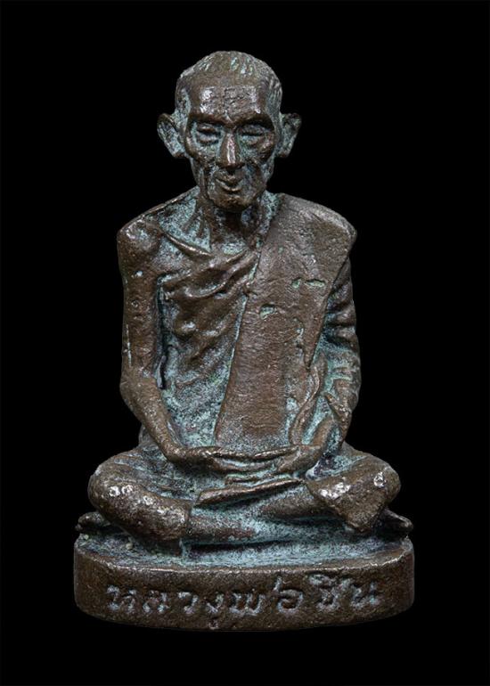 รูปหล่อหลวงพ่อชื่น วัดตำหนักเหนือ จังหวัดนนทบุรี รุ่นแรก ปี 2517 เนื้อนวโลหะ