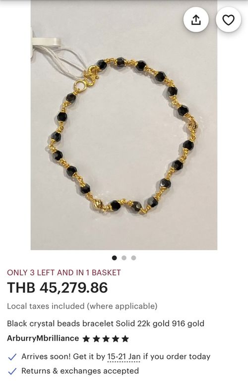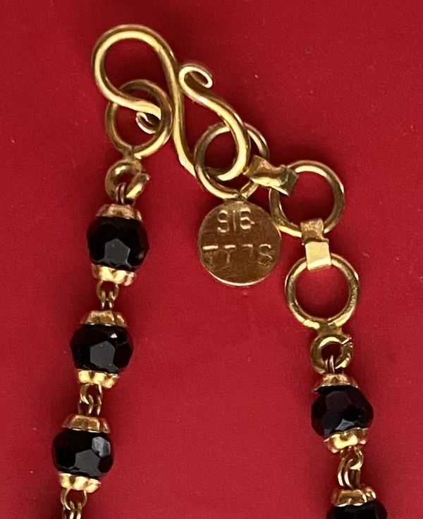 เคาะเดียว...ยอมขาดทุน..สร้อยข้อมือ/ข้อเท้าเด็กเล็ก ทอง 91.5% ประดับนิล งานจิวเวอลี่ ความยาวประมาณ 14 เซนติเมตร
