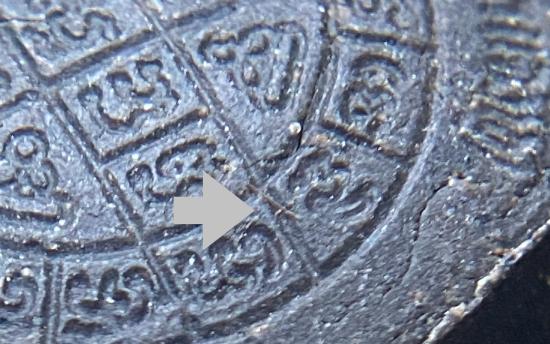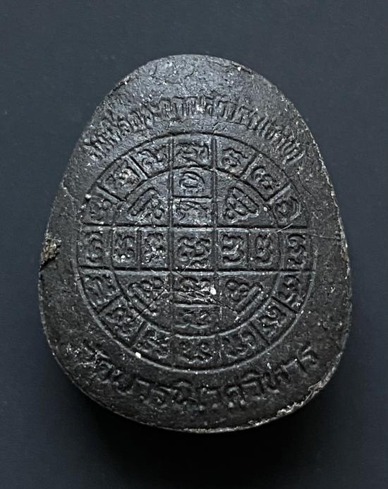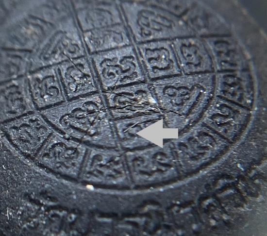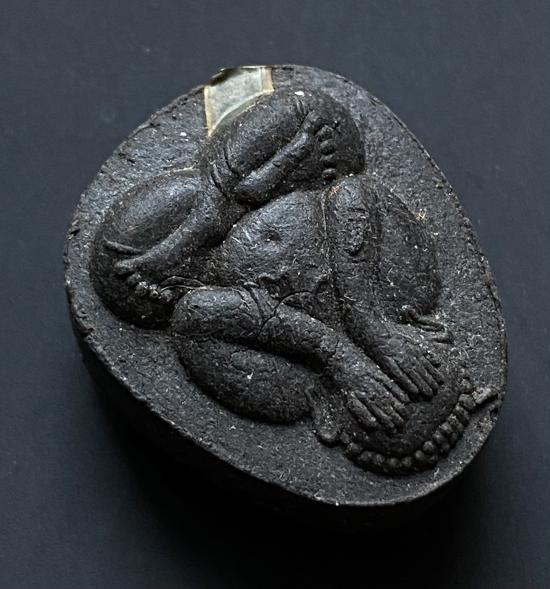 พระปิดตายันต์ดวงเล็ก ปี2523 สมเด็จพระญาณสังวร (เจริญ) วัดบวรนิเวศ_(เนื้อผงใบลานดำปลดหนี้)_พิมพ์หนา_มีเส้นเกศา_ |