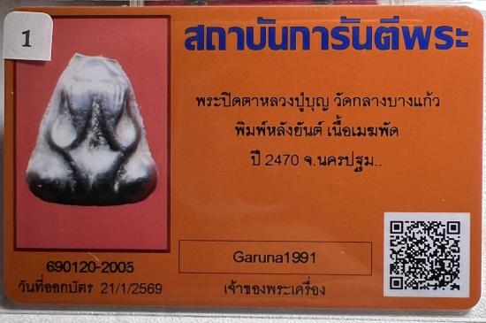 พระปิดตา หลวงปู่บุญ วัดกลางบางแก้ว +พร้อมบัตรG