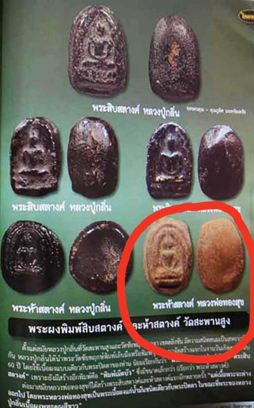 พระเนื้อผง พิมพ์ห้าสตางค์ หลวงปู่กลิ่น วัดสะพานสูง อ.ปากเกร็ด จ.นนทบุรี สร้างราวปี ๒๔๖๘ ขนาดประมาณ ๐.๘๐ X ๑.๕๐ ซ.ม. ผิวหิ้วหิ้ง เมื่อสมัยอดีตหลวงปู่กลิ่น วัดสะพานสูง มีความสนิมสนมกับท่านเจ้าคุณวัดชัยพฤกษ์มาลาเป็นอันมาก หลวงปู่กลิ่นจึงได้นำพิมพ์เล็บมือ(พิมพ์ซุ้มกอ) มาจัดสร้าง พระพิมพ์ห้าสตางค์-สิบสตางค์ หลวงปู่กลิ่น วัดสะพานสูง ตั้งแต่ พ.ศ ๒๔๖๘-๒๔๘๐ ออกให้ทำบุญในคราวฉลองสะพานและฉลองอายุ ๖๐ ปี และ ๗๓ ปี ของหลวงปู่กลิ่น จึงทำให้บางคนเรียกพระชุดนี้ว่า พระแซยิดหลวงปู่กลิ่น มีการสร้างด้วยกันสามพิมพ์หลัก ได้แก่ พระปิดตา พระพิมพ์ชัยพฤกษ์มาลา พระพิมพ์ลูกอม และ มีการสร้างตะกรุดด้วย โดยพระพิมพ์ชัยพฤกษ์มาลาถูกเรียกกันในภาษาชาวบ้านว่า พระพิมพ์สิบสตางค์ และพระพิมพ์ลูกอม เรียกว่า พระพิมพ์ห้าสตางค์ อันหมายถึงมูลค่าเงินบริจาคถวายวัดแล้วได้รับแจกพระพิมพ์นั้นไป กล่าวโดยสรุป พระพิมพ์ชัยพฤกษ์มาลา (สิบสตางค์) หลวงปู่กลิ่น วัดสะพานสูง ตามความเข้าใจมีการสร้าง ๒ ครั้ง ครั้งแรก ในราว พ.ศ ๒๔๖๘ สร้างเพื่อแจกในคราวฉลองอายุ ๖๐ ปี ของหลวงปู่กลิ่น จึงทำให้บางคนเรียกพระชุดนี้ว่า พระแซยิดหลวงปู่กลิ่น (ที่เหลือหลังจากงานออกให้ทำบุญ ๕ สตางค์ ๑๐ สตางค์) โดยยุคนั้นมีการสร้างวัตถุมงคล ๔ อย่าง คือ ๑.ตะกรุด ให้บูชาราคา ให้บูชา ๔ บาท ๒.พระปิดตา ให้บูชา ๒ บาท 3.พิมพ์ซุ้มกอ (พระพิมพ์ชัยพฤษมาลา) ให้บูชาราคา ๑๐ สตางค์ 4.พิมพ์พระลูกอม ราคา ๕ สตางค์ สำหรับพระปิดตา สร้างน้อย เหตุผลก็คือ ๑.เปลืองผง เพราะต้องสร้างจำนวนมาก ๒.ขั้นตอนการทำ ใช้เวลานาน เกรงว่าจะเสร็จไม่ทันงาน หลวงปู่กลิ่นจึงสั่งให้ มากทำพิมพ์ห้าสตางค์-สิบสตางค์ แทน ขอให้เข้าใจว่า พระปิดตาที่สร้างในวาระแซยิด นั้นมีจำนวนน้อยจริง แต่พระปิดตาที่สร้างนอกเหนือจากนี้ ในวาระอื่นนั้นก็มี ครั้งที่สอง สร้างปี พ.ศ ๒๔๘๐ ในครั้งฉลองอายุ ครบ ๗๓ ปี (เรียนรู้เพิ่มเติมได้จาก หนังสือแจกงานพระราชทานเพลิงศพ หลวงปู่กลิ่น ปี พ.ศ.๒๔๙๐) พระชุดนี้ ว่ากันว่าหายากกว่าพระปิดตาเสียอีก ใครมีต่างหวงแหน อีกหนึ่งของดีที่หายาก น่าเก็บน่าใช้ |