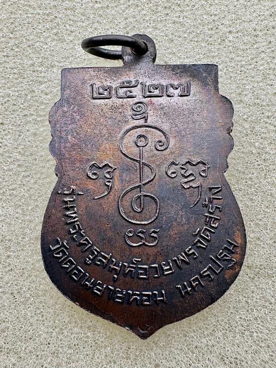 เหรียญเสมา รุ่นพระครูสมุห์อวยพร หลวงพ่อเงิน วัดดอนยายหอม จ.นครปฐม ปี 2527 เนื้อทองแดงรมดำ |