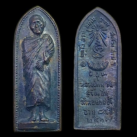 (2)วัดใจเหรียญหลวงปู่แหวน พิมพ์ยืน หลังรางปืน เนื้อทองแดงรมดำเดิมๆ ปี 2517 จ.เชียงใหม่ |