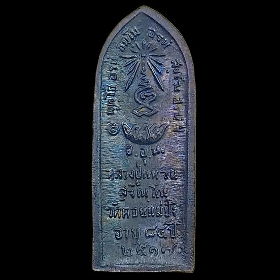 วัดสัมพันธวงศ์ กรุงเทพมหานคร จัดสร้าง คราวทำบุญอายุหลวงปู่ ๘๔ ปี เข้าพิธีในวันงานฉลองอายุเมื่อ ๑๑ มี.ค.๒๕๑๗ เป็นรูปใบข้าว หลวงปู่ห่มคลุมหน้าตรงยืนเต็มองค์ มีลายเม็ดไข่ปลาเป็นซุ้ม ไม่มีห่วง ด้านหลังรูปเฆาะขัดสมาธิ มีรัศมี บัวรองรับ พระคาถา พุทโธ อรหํ ธมฺโม อรหํ สงฺโฆ อรหํฯ อ.อุ.ม. ข้อความ "หลวงปู่แหวน สุจิณฺโน วัดดอยแม่ปั๋ง อายุ ๘๔ ปี ๒๕๑๗" มีโค้ดตอก เหรียญทองแดงรมดำและไม่ได้รม 50,000 เหรียญ, นวโลหะ 108 เหรียญ, เงิน 85 เหรียญ, ทองคำ 17 เหรียญ และที่สำคัญความน่าสนใจของเหรียญนี้มีดังนี้ครับ