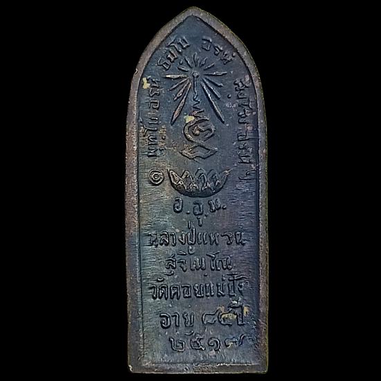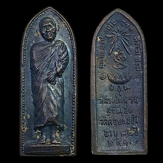 (3)วัดใจเหรียญหลวงปู่แหวน พิมพ์ยืน หลังรางปืน เนื้อทองแดงรมดำเดิมๆ ปี 2517 จ.เชียงใหม่ |