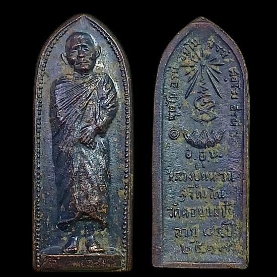 (4)วัดใจเหรียญหลวงปู่แหวน พิมพ์ยืน หลังรางปืน เนื้อทองแดงรมดำเดิมๆ ปี 2517 จ.เชียงใหม่ |