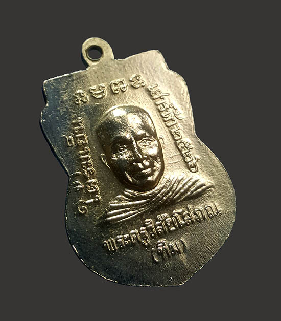 ลักษณะเป็นเหรียญเสมาล้อพิมพ์เหรียญเลื่อนสมณศักดิ์ปี 2508 ด้านหน้าเป็นรูปเหมือนหลวงปู่ทวด ด้านหลังเป็นรูปพระอาจารย์ทิม อดีตเจ้าอาวาสวัดช้างให้