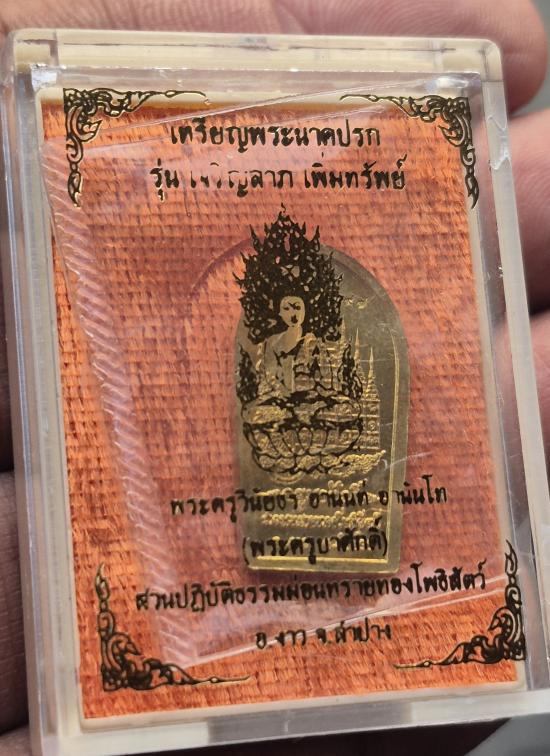 พระนาคปรก ครูบาศักดิ์ อ.งาว จังหวัดลำปาง ทองทิพย์ลงยาสีแดง 197 ปลุกเสกกลางสายน้ำไหลขึ้นทิศเหนือ