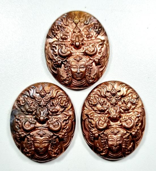 เหรียญพญาราหู พระอาจารย์ประสูติ วัดในเตา เหรียญเทพราหู เนื้อสัมฤทธิ์แดงกรรมการ ฝังเม็ดกริ่ง 3องค์ |