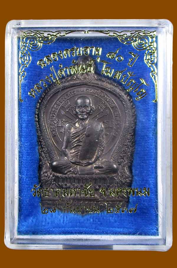 เหรียญนั่งพาน รุ่นอภิมหาทรัพย์ หลวงปู่คำพันธ์ วัดธาตุมหาชัย ปี2537 จ.นครพนม เนื้อนวะโลหะ ตอกโค๊ต สภาพสวยเดิม พร้อมกล่องเดิม |