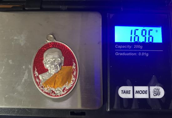 เหรียญใต้ร่มเย็น พระราชมงคลวชิรปัญญา (หลวงปู่อิ่ม ปญฺญาวุธ) วัดทุ่งนาใหม่ จ.นครศรีธรรมราช เนื้อเงินลงยาแดง / พร้อมกล่อง
