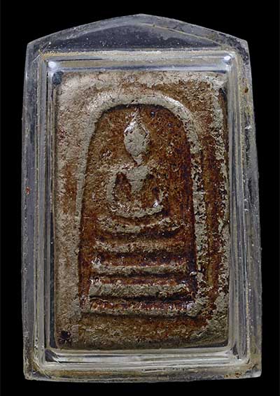 พระสมเด็จเนื้อดินผสมผงขี้เถ้าเคลือบแลคเกอร์ หลวงพ่อโอภาสี แห่งอาศรมบางมด กรุงเทพมหานคร ปี ๒๔๘๕