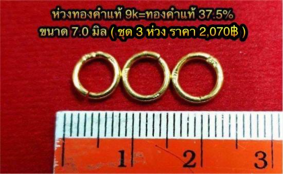"ห่วงทองคำแท้ 9k = ทองคำแท้ 37.5%" (ตอกโค๊ดร้าน + โค๊ด 375) ขนาด 7.0 มิล จำนวน 3 ห่วง น.น.รวม 0.60 กรัม / สินค้าราคา (2,070฿) เคาะเดียวพร้อมจัดส่ง ems ให้ครับ.