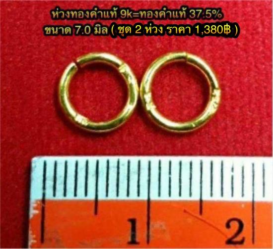 "ห่วงทองคำแท้ 9k = ทองคำแท้ 37.5%" (ตอกโค๊ดร้าน + โค๊ด 375) ขนาด 7.0 มิล จำนวน 2 ห่วง น.น.รวม 0.40 กรัม / สินค้ารขาคา (1,380฿) พิเศษเคาะเดียวพร้อมจัดส่ง ems ให้ครับ.