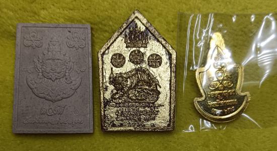 พระผงเสือนอนกิน(เนื้อผงเศรษฐีทั้ง 5)รุ่นแรก+เหรียญท้าวเวสสุวรรณ รุ่นเพิ่มทรัพย์+พระผงดวงดี หลวงพ่อแม้น วัดหน้าต่างนอก(เคาะเดียวครับ)