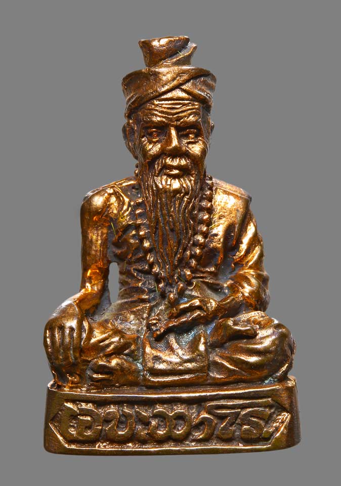 รูปหล่อฤาษีหลวงปู่พรหมมา วัดสวนหินผานางคอย ปี 2537 รุ่นฉลองอายุ 96 ปี เนื้อนวะโลหะ จ.อุบลราชธานี หมายเลขประจำองค์ 438 สวกมาก พร้อมกล่องเดิม เดิม