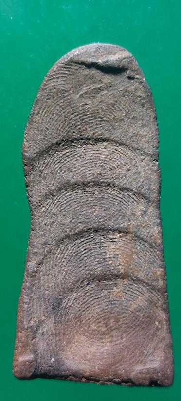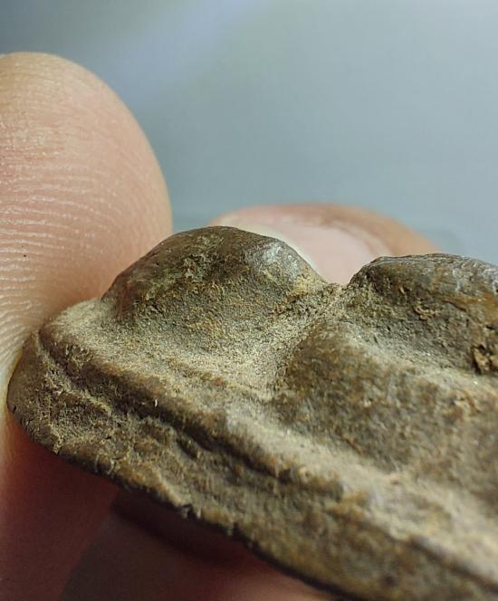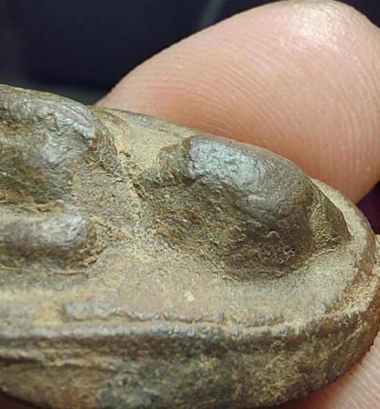 พระสภาพน่ารัก ด้านหลังมีรอยกดลายนิ้วมือเป็นชั้นๆ แปลกตาไปอีกแบบ ขนาดพระสูงประมาณ 6 ซม. กว้างประมาณ 2.5 ซม.