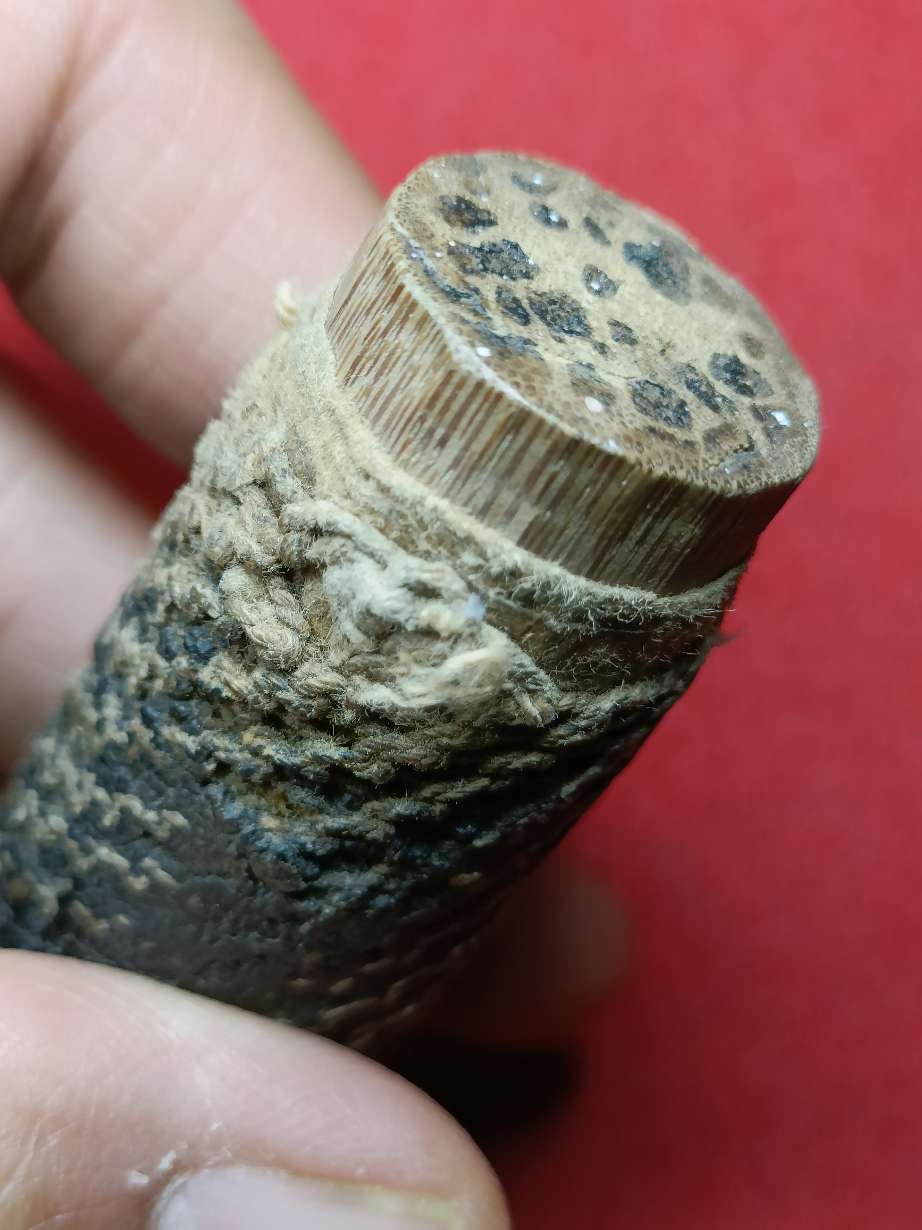 ล้มมวยตะกรุดแกนไม้พันกระดาษสาลงขระถักเชือกผอกผงคลุกรักเก่ายาว4นิ้ว |