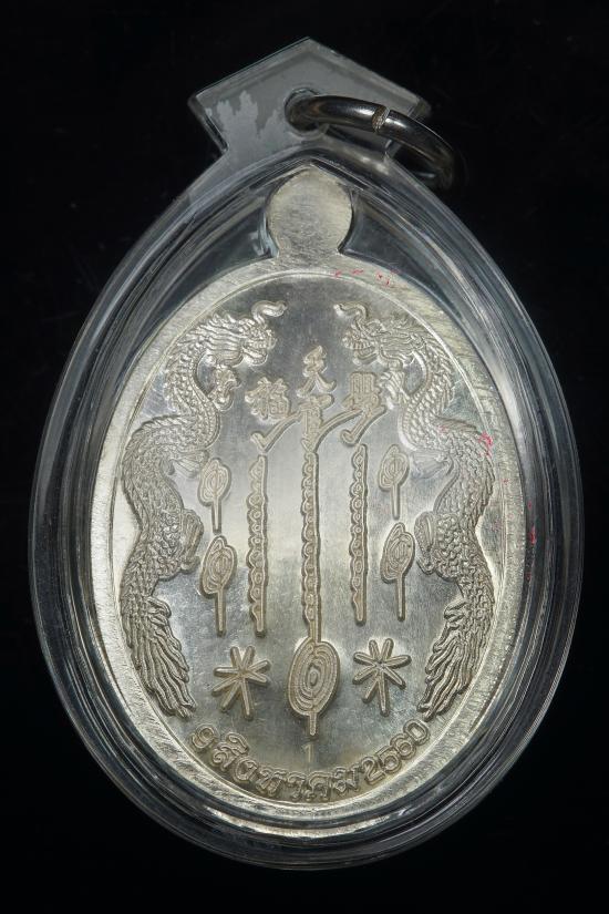 เหรียญมังกรคู่ อาแปะ เซียนแปะโรงสี เนื้อเงิน รุ่นมังกรทยานฟ้ามหาบารมี จำนวนสร้าง239องค์ ยิ่ง บูชา ยิ่ง ศรัทธา เงินไหล องค์นี้ หมายเลข 1 |