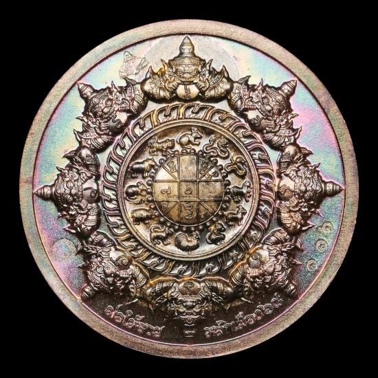 เหรียญบรมครูตาขุนโหร หลักเมือง ๖๘ รุ่น "พ่อให้รวย" นครศรีธรรมราช จัดสร้างโดย หมึก ท่าพระจันทร์ เนื้อทองแดงผิวรุ้ง สอดไส้ชนวน หมายเลข ๑๑๖ พร้อมกล่องเดิม ปลุกเสก ๔ วาระ พิธีใหญ่แห่งปี เกจิดังทั่วประเทศร่วมปลุกเสก |