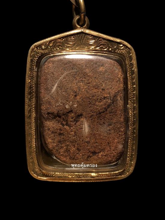 พระหลวงพ่อปาน วัดบางนมโค พิมพ์ทรงไก่หางสี่เส้นบัวสองชั้น เนื้อดิน ปี 2460 จ.พระนครศรีอยุธยา (สภาพใช้) ยังมีผงอยู่ เลี่ยมทอง พร้อมบัตรรับประกัน