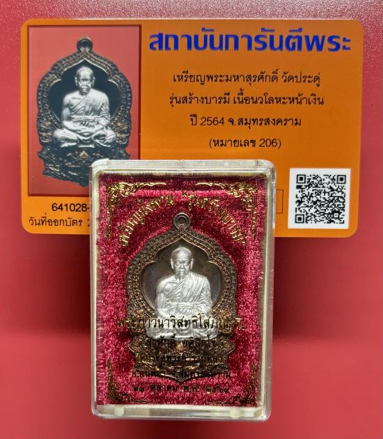 เหรียญหลวงพ่อพระมหาสุรศักดิ์ วัดประดู่พระอารามหลวง รุ่นสร้างบารมี เนื้อนวโลหะหน้ากากเงิน ปี 2564 จ.สมุทรสงคราม พร้อมบัตรรับรอง รับประกันตามกฎครับ |