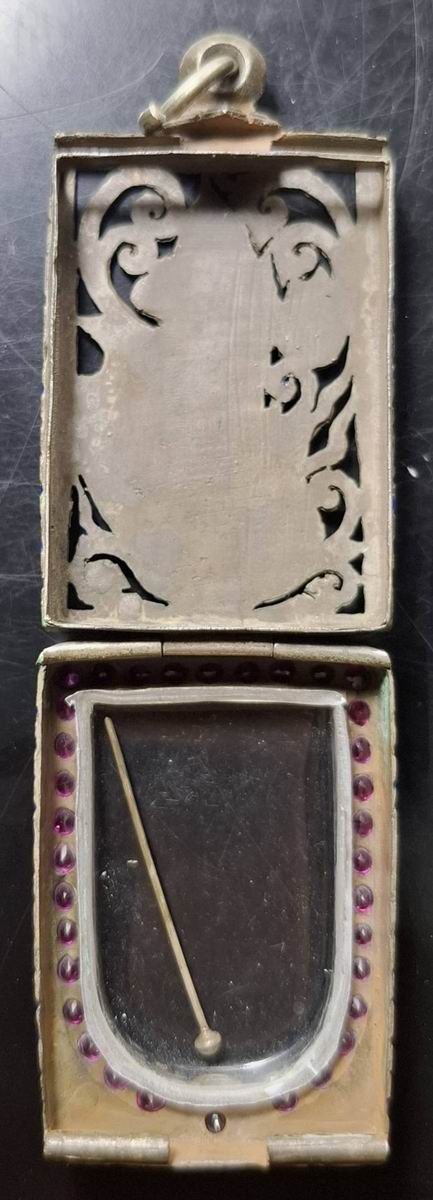 ตลับเงินลงยา ฝังพลอย ฉลุหลัง สวยคลาสสิคสภาพสมบูรณ์ ขนาดใส่สมเด็จวัดระฆังมาตรฐานทั่วไปครับ