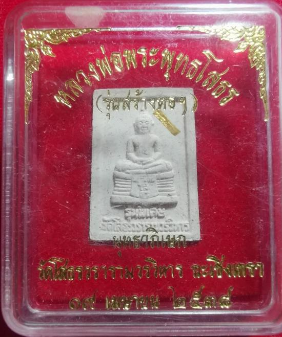 พระพุทธโสธรเนื้อผง หลังสมเด็จพระเจ้าตากสินมหาราช พิมพ์สี่เหลี่ยม ฝังตะกรุดทองคำ ปี2538 สภาพสวยเดิมๆพร้อมกล่อง