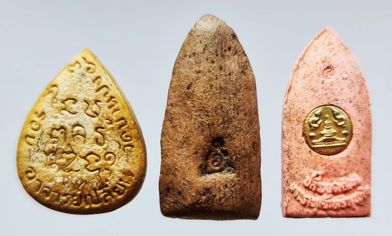 << วัดใจ >> พระผงใบโพธิ์ รุ่นแรก พระอาจารย์เปลี่ยน + พระรอดหลัง อ ครูบาอินทร + พระรอดหลวงหริภุญชัย รุ่นปลียอดฉัตรพระธาตุเจ้าหริภุญชัย |