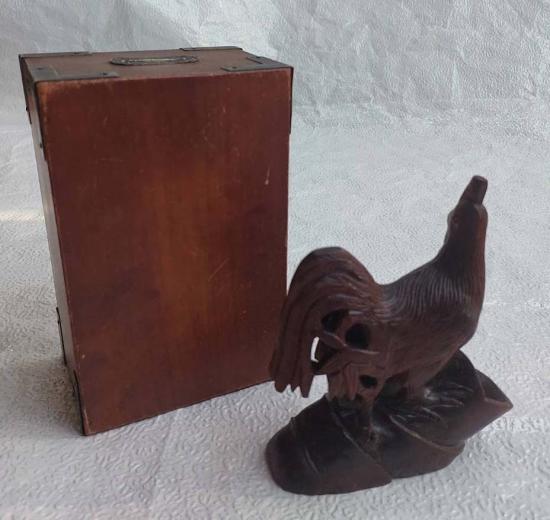 ***วัดใจ****กล่องไม้วินเทจ กับไก่แกะสลักด้วยไม้พยุง ฝีมือของญี่ปุ่น |