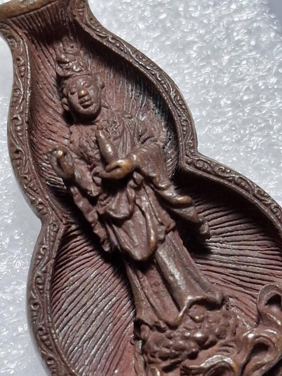 เหรียญหล่อพิมพ์น้ำเต้า เจ้าแม่กวนอิม รุ่นลายเซ็นต์ ปี36 |