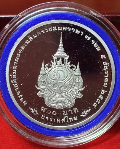 เหรียญกษาปณ์ที่ระลึก เนื้อเงินขัดเงา 800บาท เฉลิมพระชนมพรรษา ในหลวงร.9 ครบ 7รอบ พร้อมกล่อง,ใบเซอร์ ครบชุด