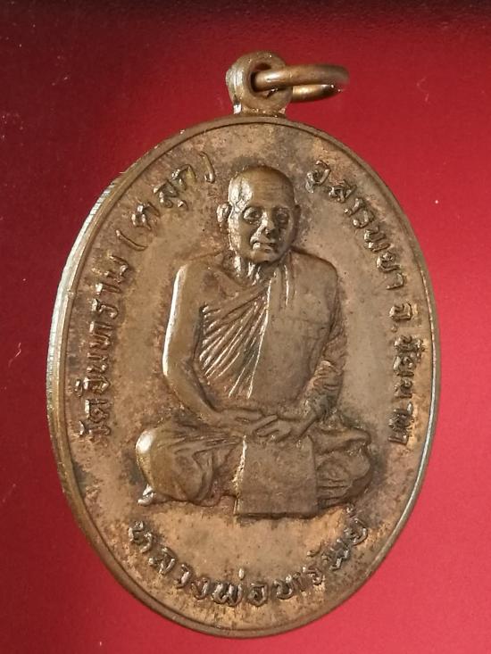 เหรียญหลังยันต์นกคุ้ม หลวงพ่อทรัพย์ วัดอินทราราม (ตลุก) อ.สรรพยา จ.ชัยนาท ปี ๒๕๑๙ เนื้อทองแดง |
