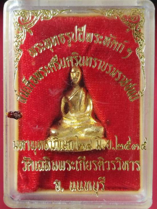 พระพุทธรูปฝีพระหัตถ์ สมเด็จย่า วัดเฉลิมพระเกียรติ นนทบุรี ปี ๒๕๓๕ กะไหล่ทอง พร้อมกล่อง