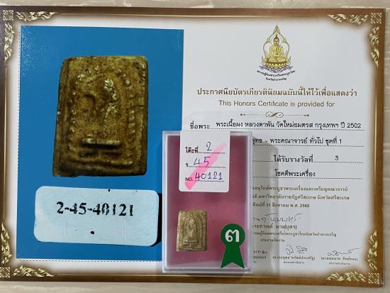 สร้างยุคต้น เนื้อจัด แก่มวลสาร ปี 2502 สมบูรณ์ผิวเดิมๆ ไม่หักไม่ซ่อม รับประกันพระแท้ ดูง่าย พร้อมใบประกาศจากสมาคม