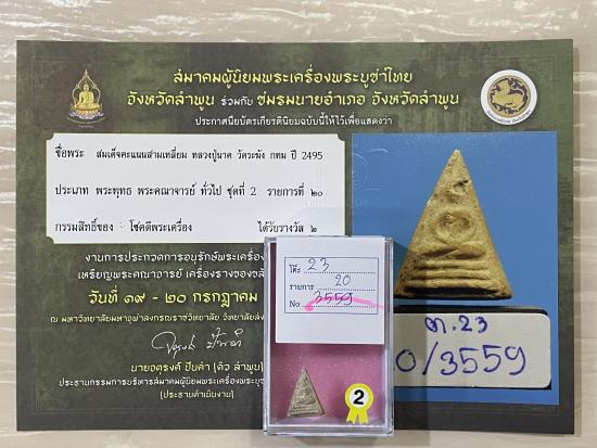 สร้างปี 2495 สภาพสวย สมบูรณ์ ไม่หักไม่ซ่อม รับประกันพระแท้ ดูง่าย ใบประกาศรางวัลที่2งานสมาคม
