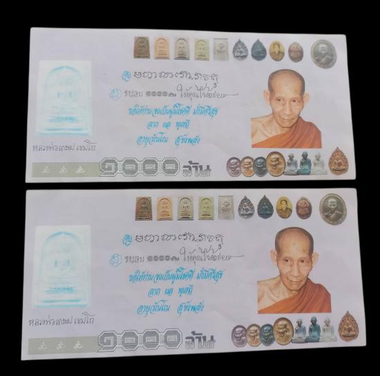 พร้อมกันทีเดียว 2 ฉบับครับ ธนบัตร ขวัญถุงมหาโภคทรัพย์ มงคลเกษม๘๑ หลวงพ่อเกษมเขมโก ๒๕๓๕ สวยๆเลยครับ |