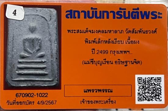 พระมงคลมหาลาภพระสมเด็จพิมพ์เล็กเนื้อผงพรหมโสฬรปี2499.คุณแม่บุญเรือน#4