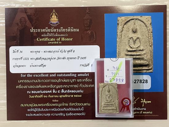 สร้างปี 2495 สภาพสวย สมบูรณ์ ไม่หักไม่ซ่อม รับประกันพระแท้ ดูง่าย ใบประกาศรางวัลที่1งานสมาคม