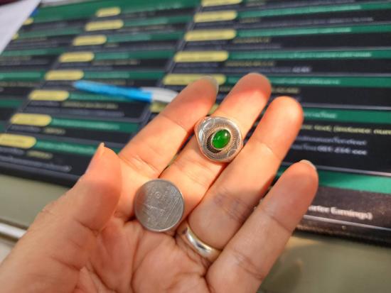 แหวนเงินหยกเขียวใส สวยๆ หยก 1.25 ct Type A size 62-63