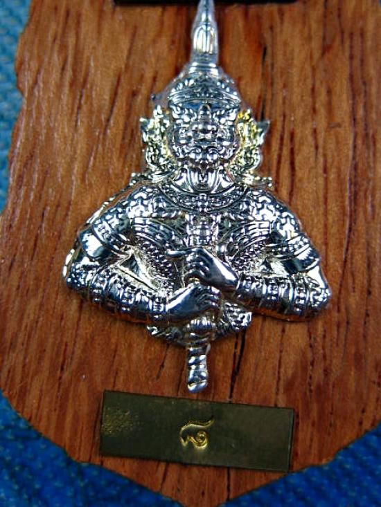 ไม้คูณแกะเสมาท้าวเวสสุวรรณ หน้ากากชุบเงิน รุ่นประทานพร หมายเลขสวยๆ หมายเลข ๘ หลวงพี่เลี้ยง วัดจอมเกษ จ.พระนครศรีอยุธยา (---A40---) |