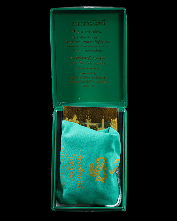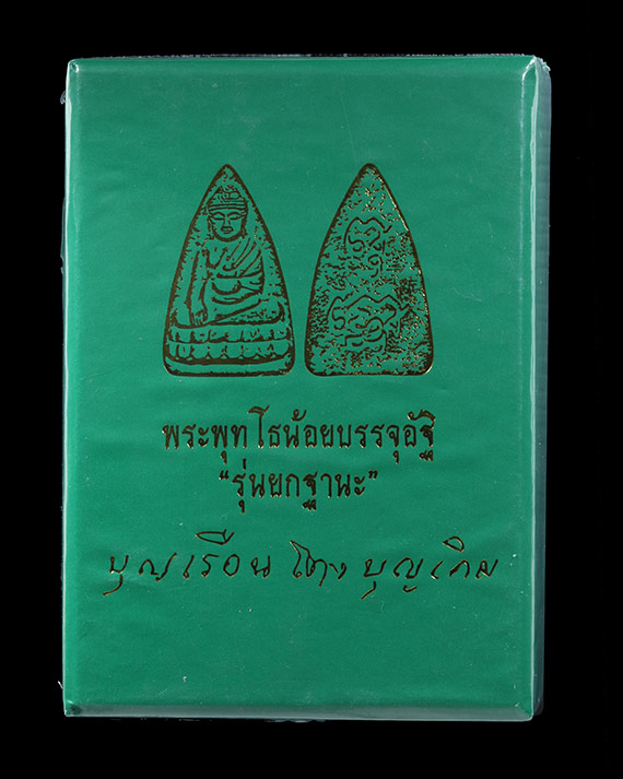 1.กล่องสีเขียวบรรจุพระปิดซีลด้วยกระดาษสีเงินเขียนรุ่นยกฐานะ