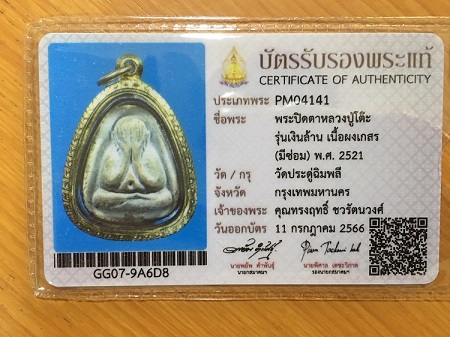พระปิดตาเงินล้าน หลวงปู่โต๊ะ วัดประดู่ฉิมพลี ปี2521(เนื้อเกสร+ตะกรุดเดี่ยว) เลี่ยมทองพร้อมบัตร สมาคมพระเครื่องพระบูชา ไทย ( ระบุมีซ่อม )