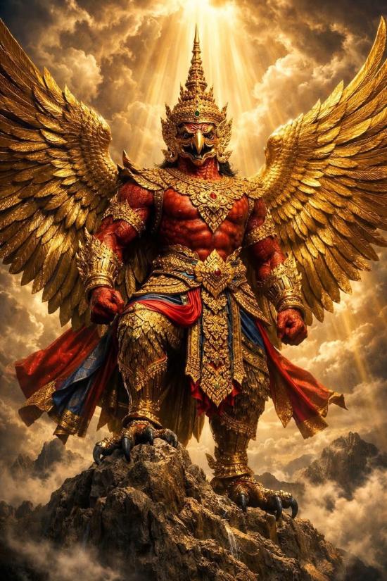 ครุฑเป็นสัตว์ใหญ่ มีอานุภาพและพละกำลังมหาศาล แข็งแรง บินได้รวดเร็ว มีสติปัญญาเฉียบแหลม อ่อนน้อมถ่อมตน และมีสัมมาคารวะ