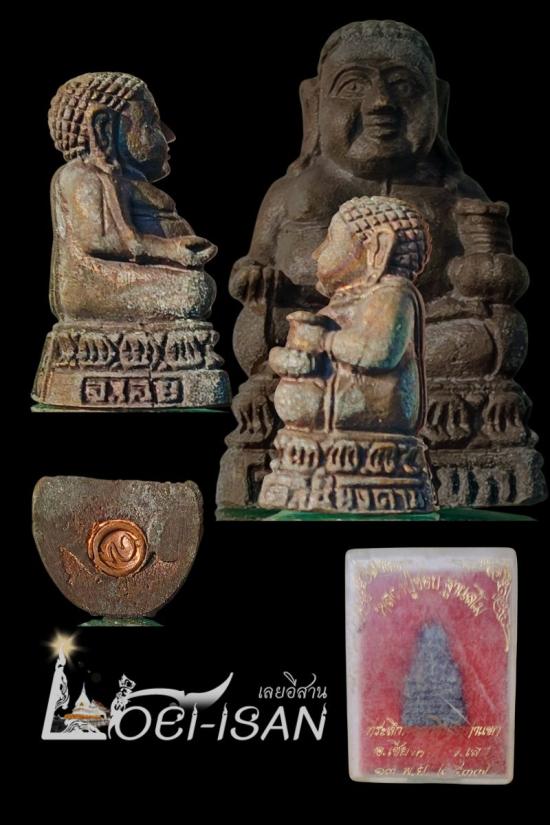 พระสังกัจจายน์ หลวงปู่ชอบ ฐานสโม พิมพ์ถือถุงเงิน ปี 37 วัดท่าแขก จ.เลย |